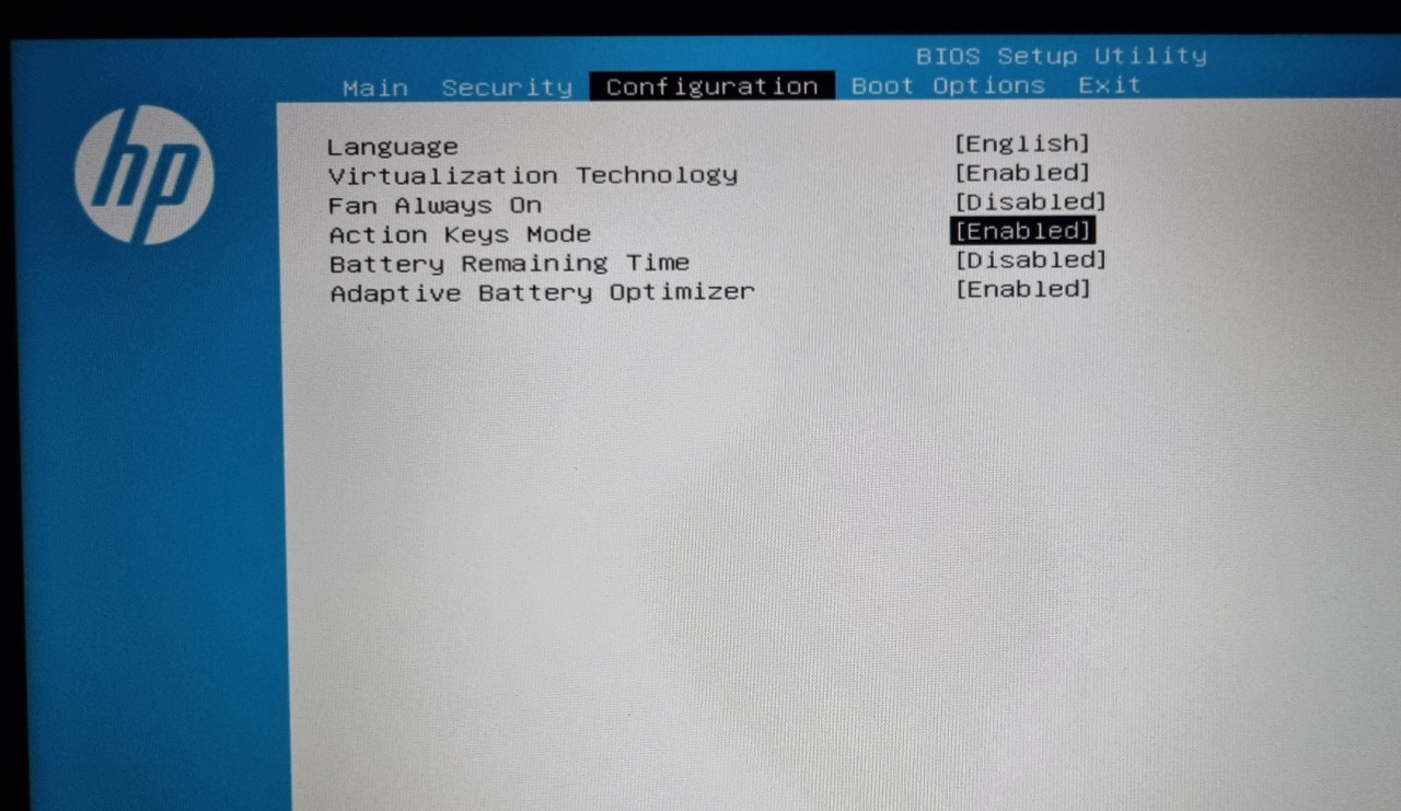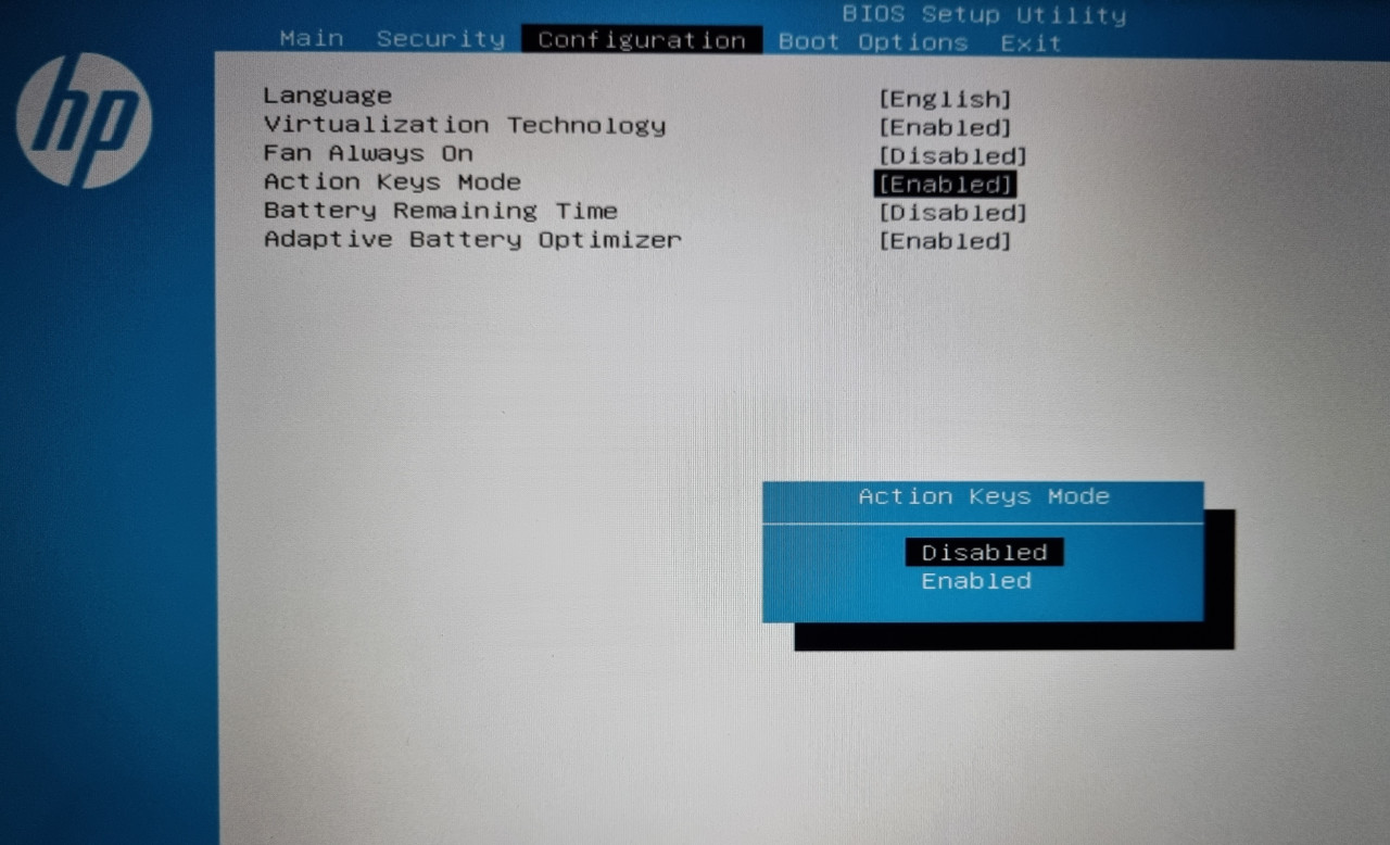 Configuration 메뉴에 가 보면 [Action Keys Mode]라는 항목을 찾을 수 있습니다.